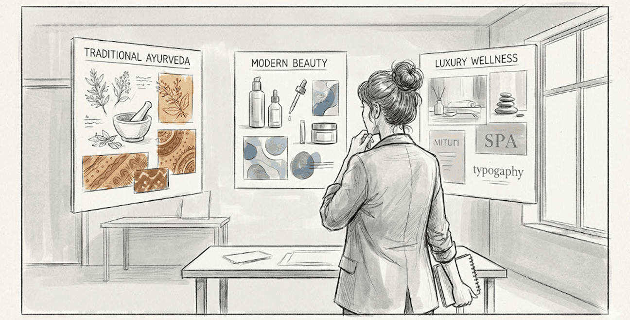 The design strategy revolved around “Quiet Heritage” — a calm, confident visual language rooted in Ayurvedic purity yet modern in aesthetic.