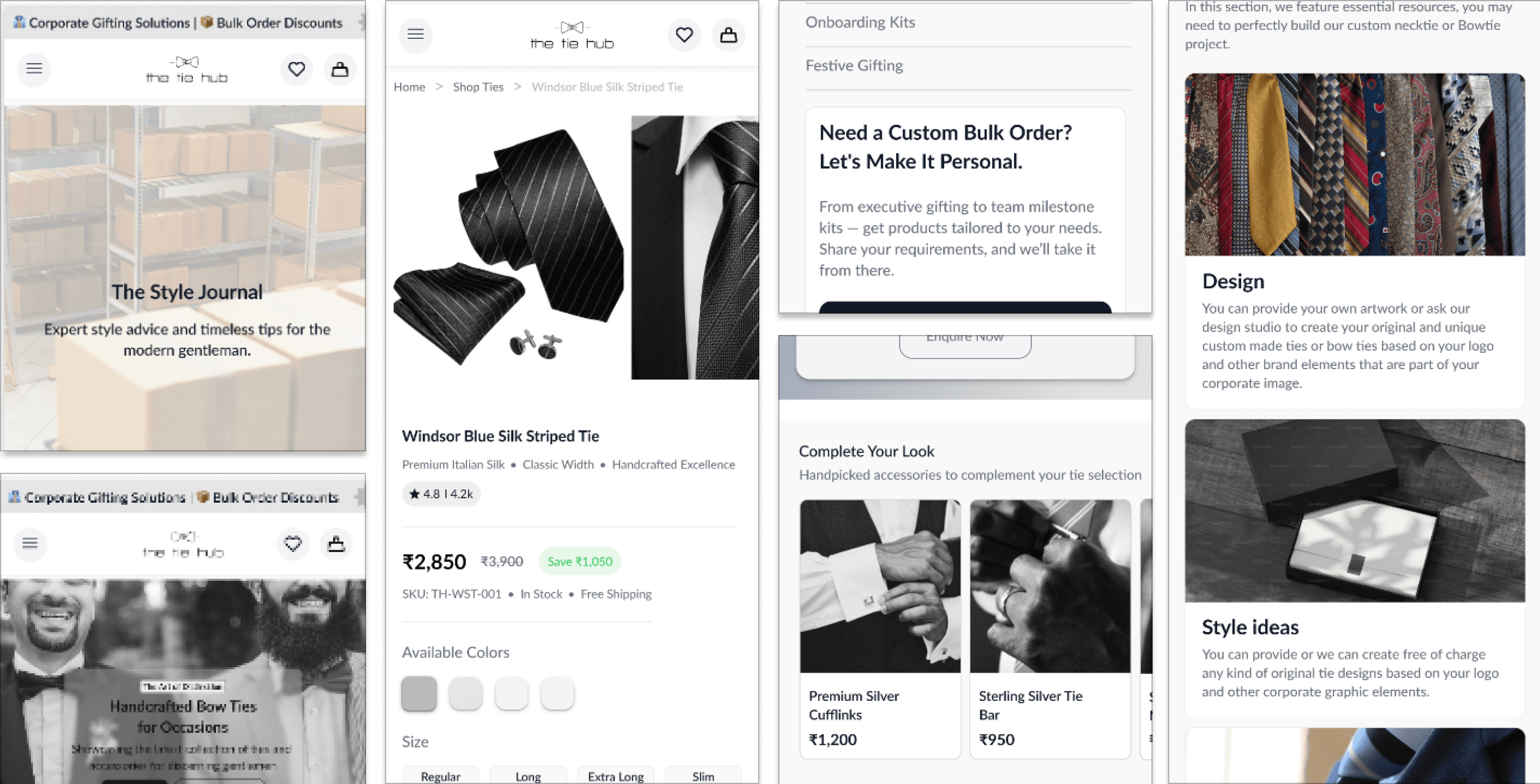 The Tie Hub needed a smoother shopping flow for users exploring ties, cufflinks, and accessories. I led the UX revamp, restructuring categories, mapping flows, and designing streamlined wireframes for the upcoming UI phase.